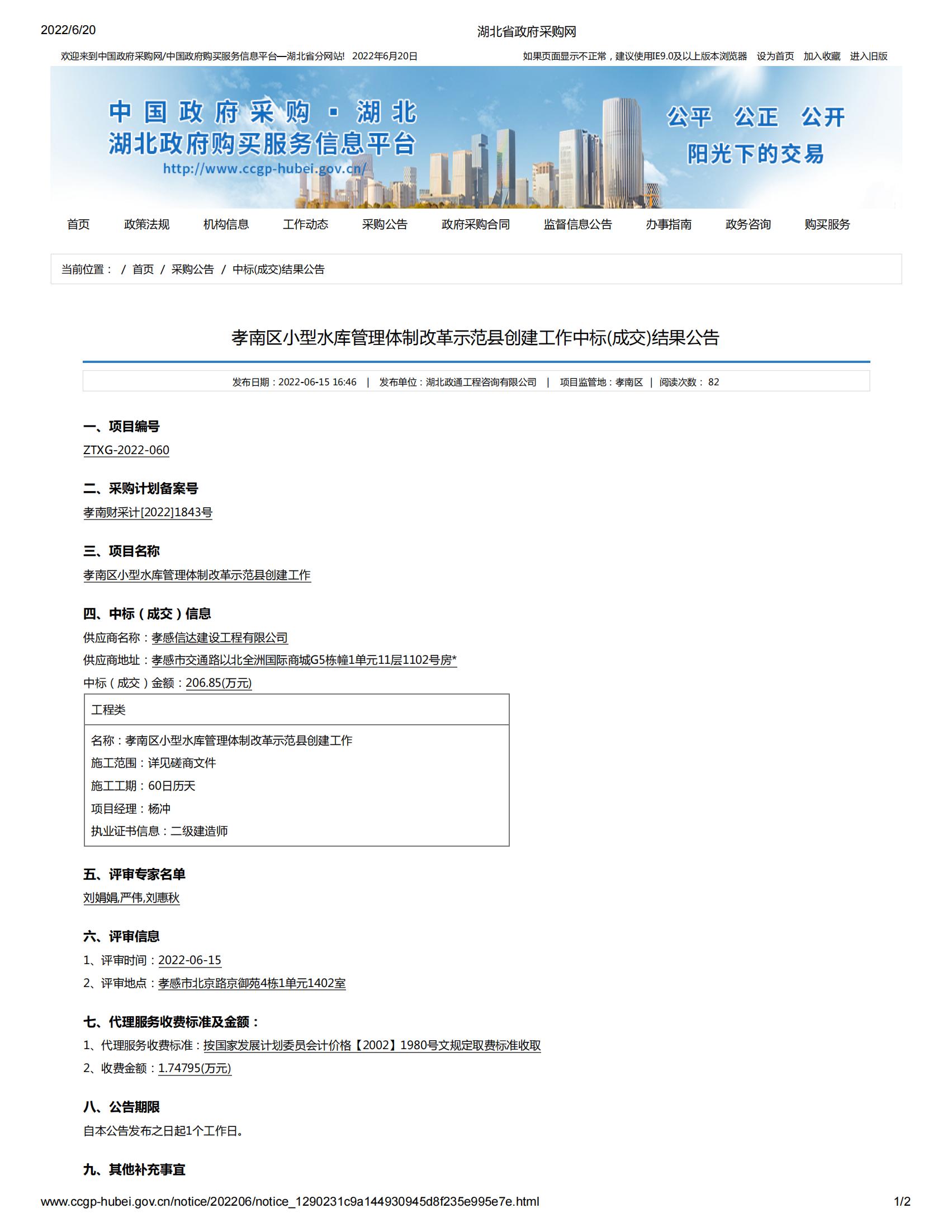 項目名稱:孝南區(qū)小型水庫管理體制改革示范縣創(chuàng)建工作