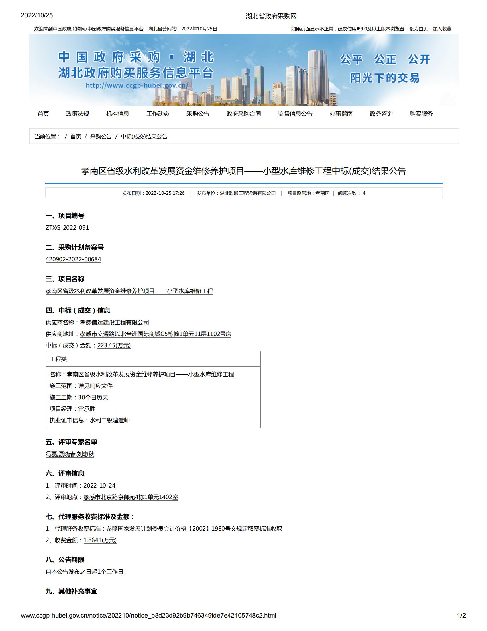 孝感市孝南區(qū)省級(jí)水利改革發(fā)展資金維修養(yǎng)護(hù)項(xiàng)目——小型水庫(kù)維修工程