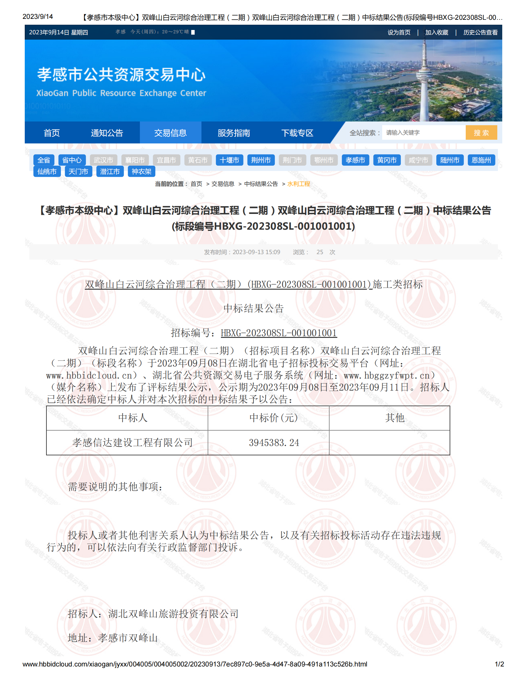項(xiàng)目名稱:雙峰山白云河綜合治理工程(二期)