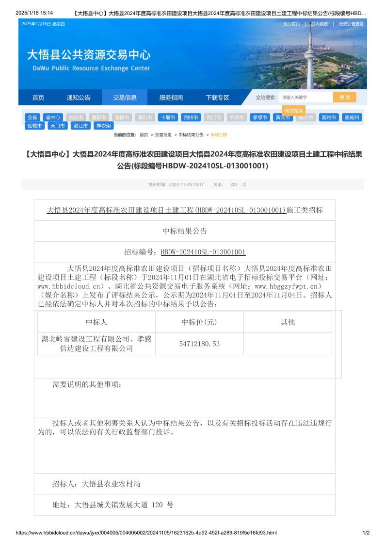 項(xiàng)目名稱:大悟縣2024年度高標(biāo)準(zhǔn)農(nóng)田建設(shè)項(xiàng)目土建工程